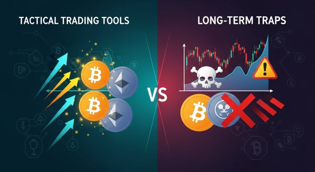 À titre indicatif, avec une volatilité quotidienne moyenne observée sur les principaux actifs crypto, la perte potentielle en l’absence de tendance claire devient significative après seulement quelques semaines.