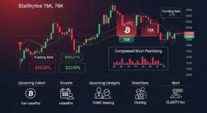La mathématique est simple : plus les shorts restent entassés sous les 76 000 dollars sans concrétisation à la baisse, plus le mouvement éventuel devient comprimé, dans un sens comme dans l’autre.