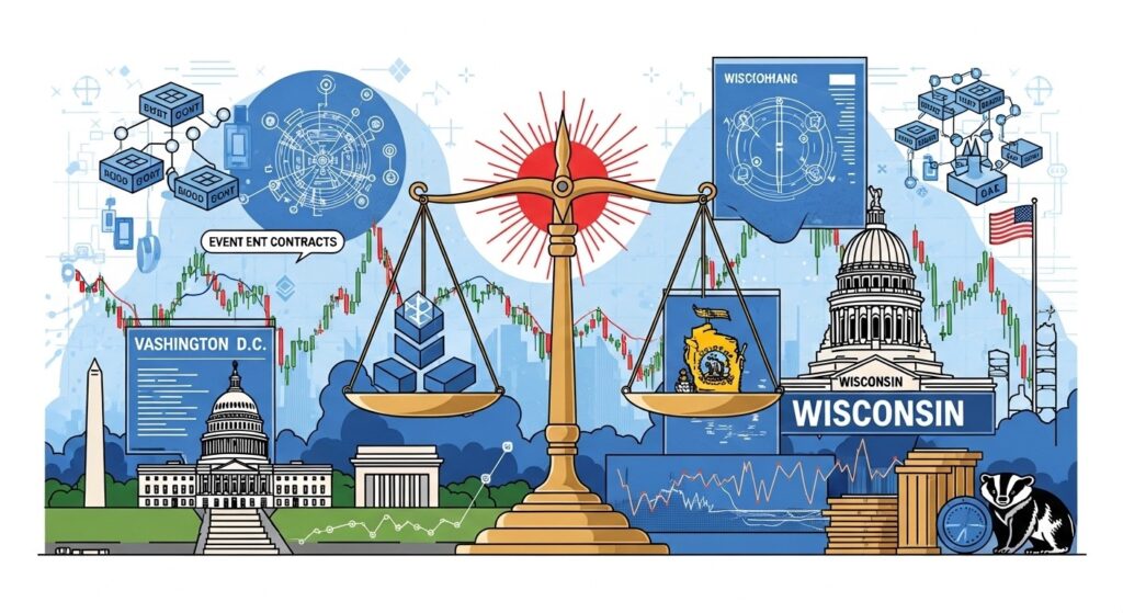 Cette affaire n’est pas un simple différend local. Elle révèle un conflit profond entre l’autorité fédérale et les pouvoirs des États sur la régulation d’un secteur en pleine croissance. Au cœur du débat : les contrats basés sur des événements réels, souvent qualifiés de « event contracts », proposés par des acteurs comme Kalshi, Polymarket, Crypto.com, Robinhood et Coinbase. La CFTC affirme son autorité exclusive, tandis que le Wisconsin les considère comme du jeu d’argent illégal.