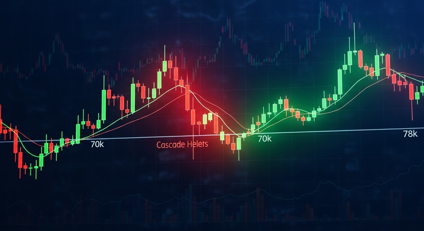 Imaginez un marché où chaque mouvement de prix est observé avec une tension palpable, où des milliards de dollars en positions à effet de levier pèsent sur un équilibre fragile. C’est exactement la situation actuelle du Bitcoin, qui navigue dans une fourchette étroite autour des 70 000 à 78 000 dollars, tandis que des clusters de liquidations massives se forment de part et d’autre. Ces zones critiques pourraient transformer une simple fluctuation en une cascade explosive.