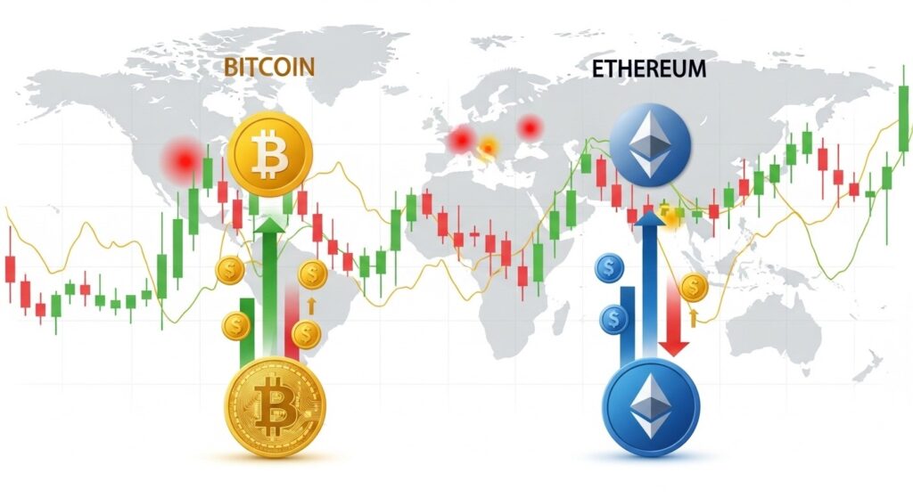 Les flux ETF influencent directement les prix du Bitcoin et de l’Ethereum. Des entrées massives augmentent la demande d’actifs sous-jacents, soutenant les cours. À l’inverse, les sorties peuvent exercer une pression vendeuse, même si d’autres facteurs comme les mineurs ou les whales jouent également un rôle.