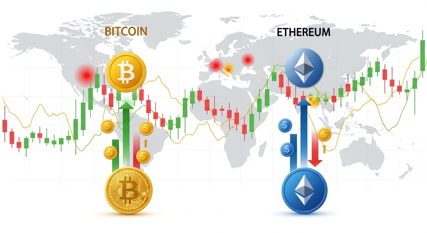 Cette divergence entre les deux cryptomonnaies phares n’est pas sans rappeler les dynamiques observées par le passé. Le Bitcoin, souvent perçu comme une valeur refuge numérique, attire davantage les capitaux institutionnels en période d’incertitude. Ethereum, plus orienté vers l’innovation technologique et la DeFi, semble plus sensible aux mouvements de court terme.