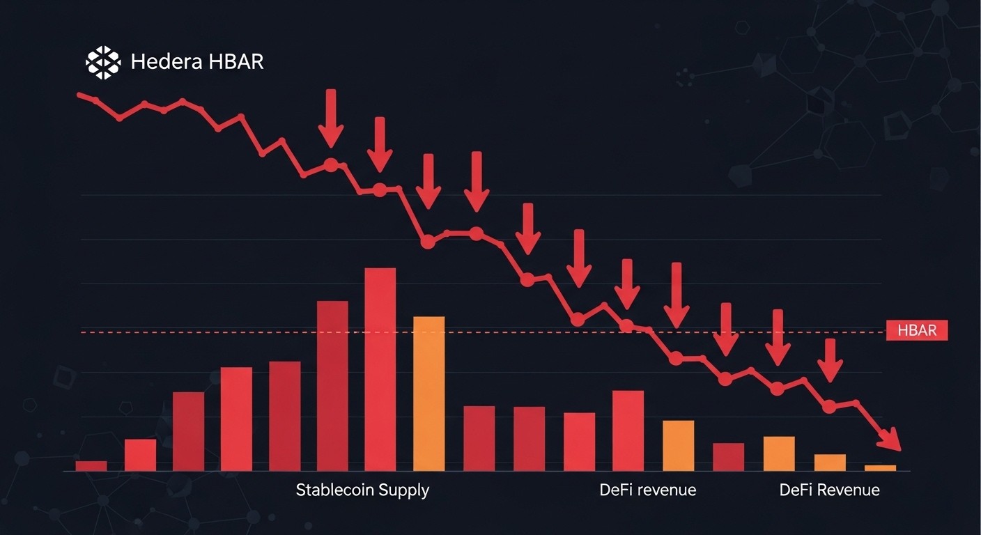 Imaginez un réseau blockchain réputé pour sa rapidité et sa sécurité qui, du jour au lendemain, voit son activité ralentir brutalement. C’est précisément ce que traverse Hedera en ce début avril 2026. Le token HBAR a plongé à un plus bas de six semaines autour de 0,083 dollars, accusant une baisse de plus de 12 % sur un mois. Derrière ces chiffres se cachent des indicateurs on-chain préoccupants : une forte contraction des revenus générés par les applications DeFi et une diminution notable de la supply de stablecoins.