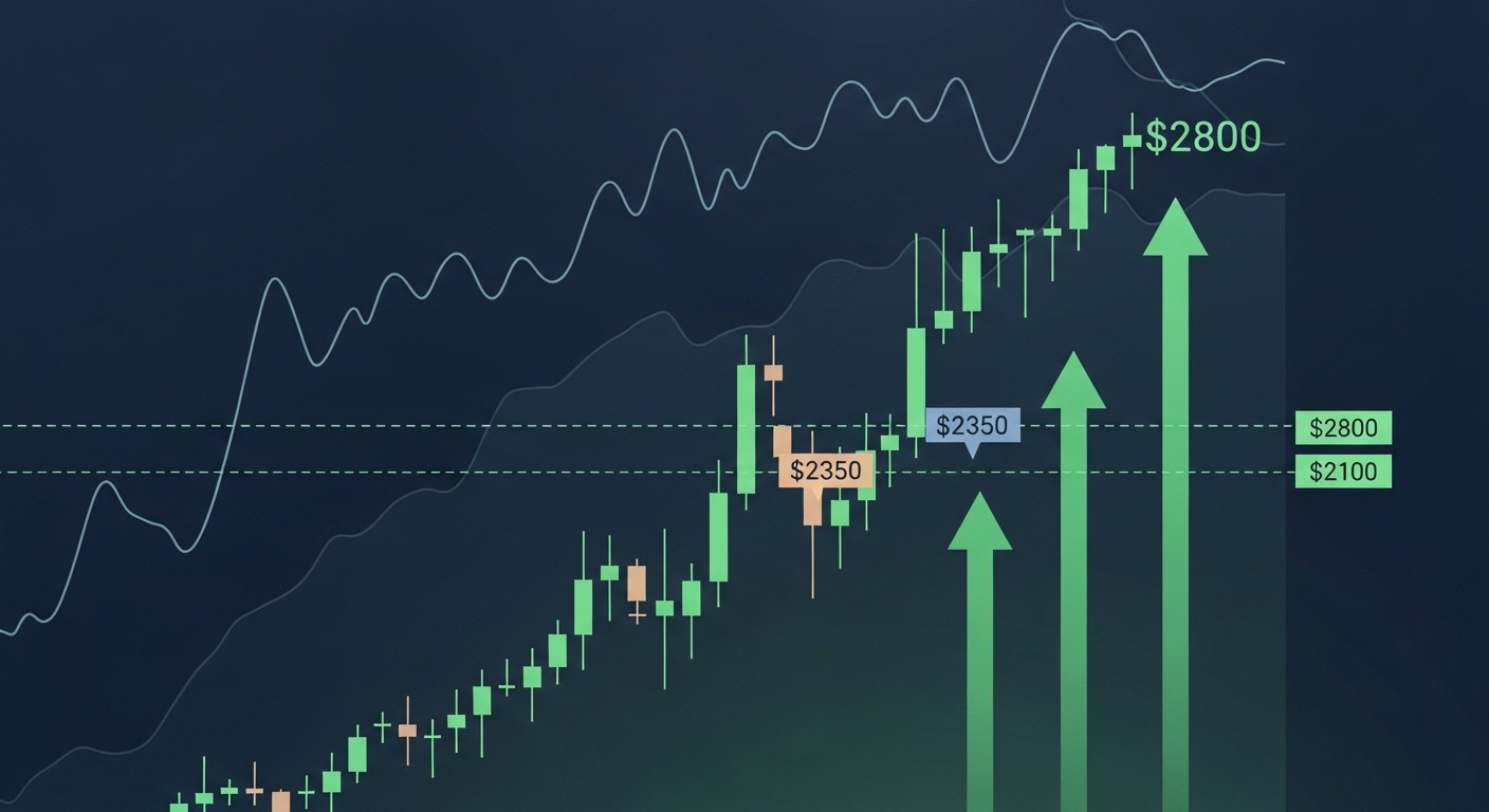 Le prix hésite cependant autour de la zone des 2 350 $. Ce niveau représente à la fois une résistance psychologique et une zone où les ordres de vente se concentrent. Une clôture franche au-dessus pourrait ouvrir la voie vers les 2 800 $, tandis qu’un rejet net risquerait un retour vers les 2 100 $ et la trendline haussière en cours de formation.