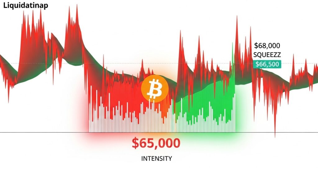 Bitcoin oscille autour de 66 000 dollars et une carte de liquidations révèle des zones…