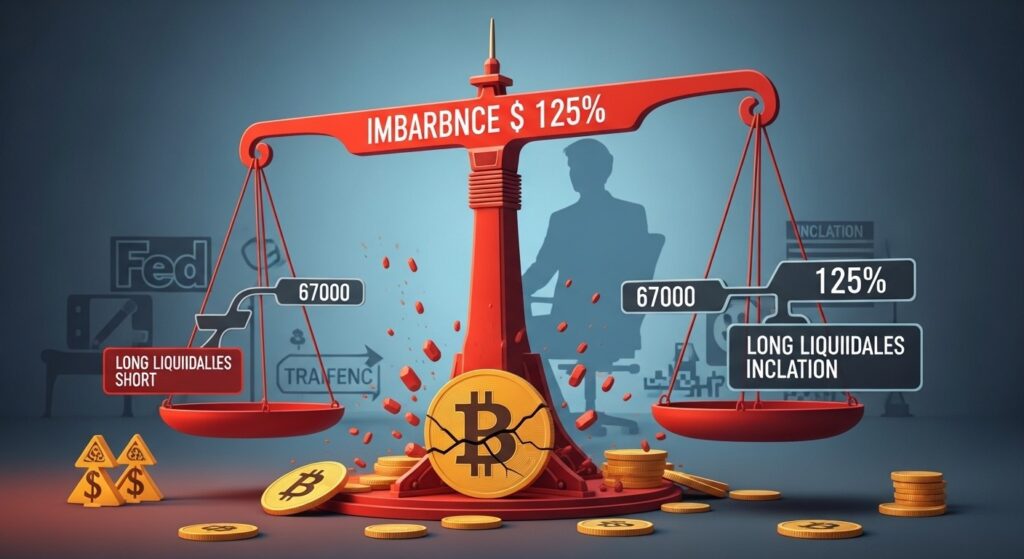 Bitcoin tient au-dessus des 67 000 $ mais un déséquilibre massif de liquidations de 125…