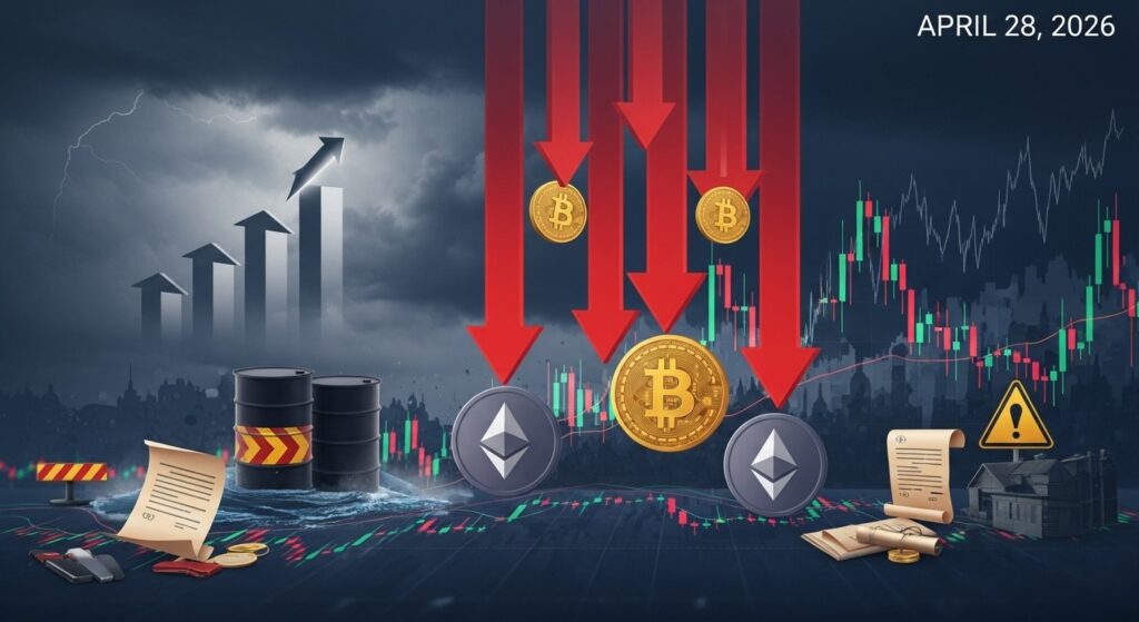 Imaginez-vous en train de consulter votre portefeuille ce matin du 28 avril 2026 : Bitcoin a glissé sous les 77 000 dollars, Ethereum peine autour des 2 300 dollars et l’ensemble du marché des cryptomonnaies affiche une perte d’environ 1,3 %. La capitalisation totale retombe à 2,64 billions de dollars. Ce n’est pas une simple correction technique. Derrière ces chiffres se cache une combinaison explosive de facteurs géopolitiques et économiques qui pèse lourdement sur le sentiment des investisseurs.