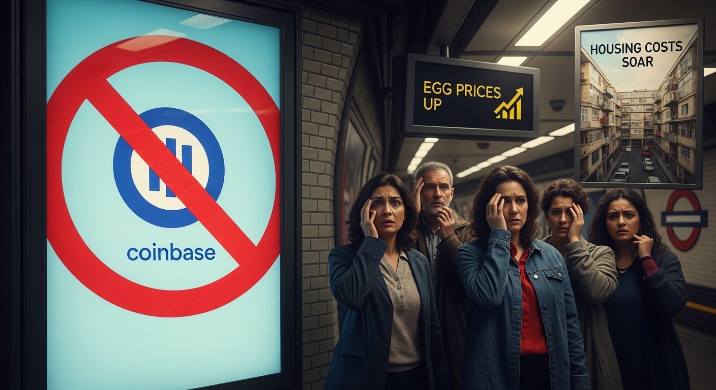 Imaginez-vous dans le métro londonien, pressé par la foule matinale, quand soudain une affiche géante vous interpelle : des images de familles angoissées par la flambée des prix, des salaires stagnants depuis 2008, et en gros caractères une invitation implicite à changer radicalement de système financier. C’est exactement ce que proposait la dernière campagne de Coinbase au Royaume-Uni… jusqu’à ce que les autorités mettent brutalement fin à cette opération marketing jugée beaucoup trop provocatrice.