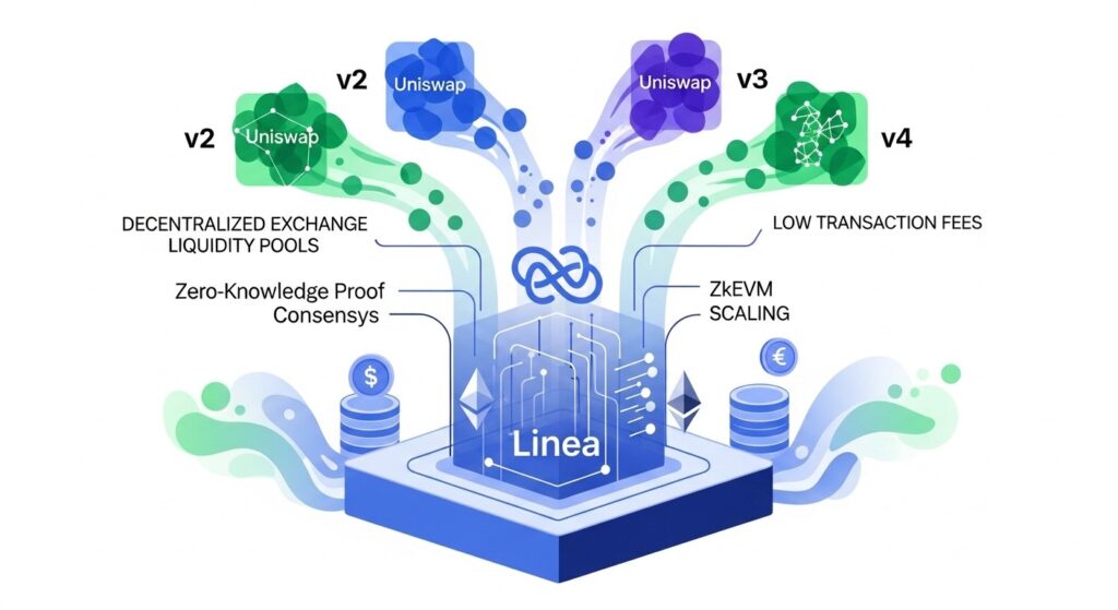 - Support complet pour Uniswap v2, v3 et v4 sur Linea zkEVM.