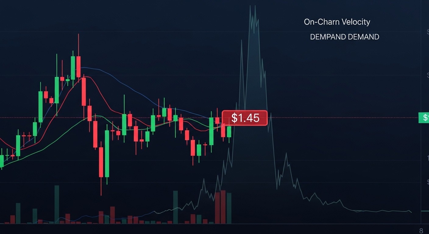 Scénario haussier (probabilité modérée) : Les acheteurs défendent 1,45 $ avec acharnement. Des bougies à corps réduit et longues mèches inférieures montrent une résistance croissante des vendeurs. Un rebond vers 1,60–1,70 $ devient plausible, surtout si le RSI sort de la zone survendue. Pour confirmer, il faudrait récupérer 1,80 $ et le tenir.